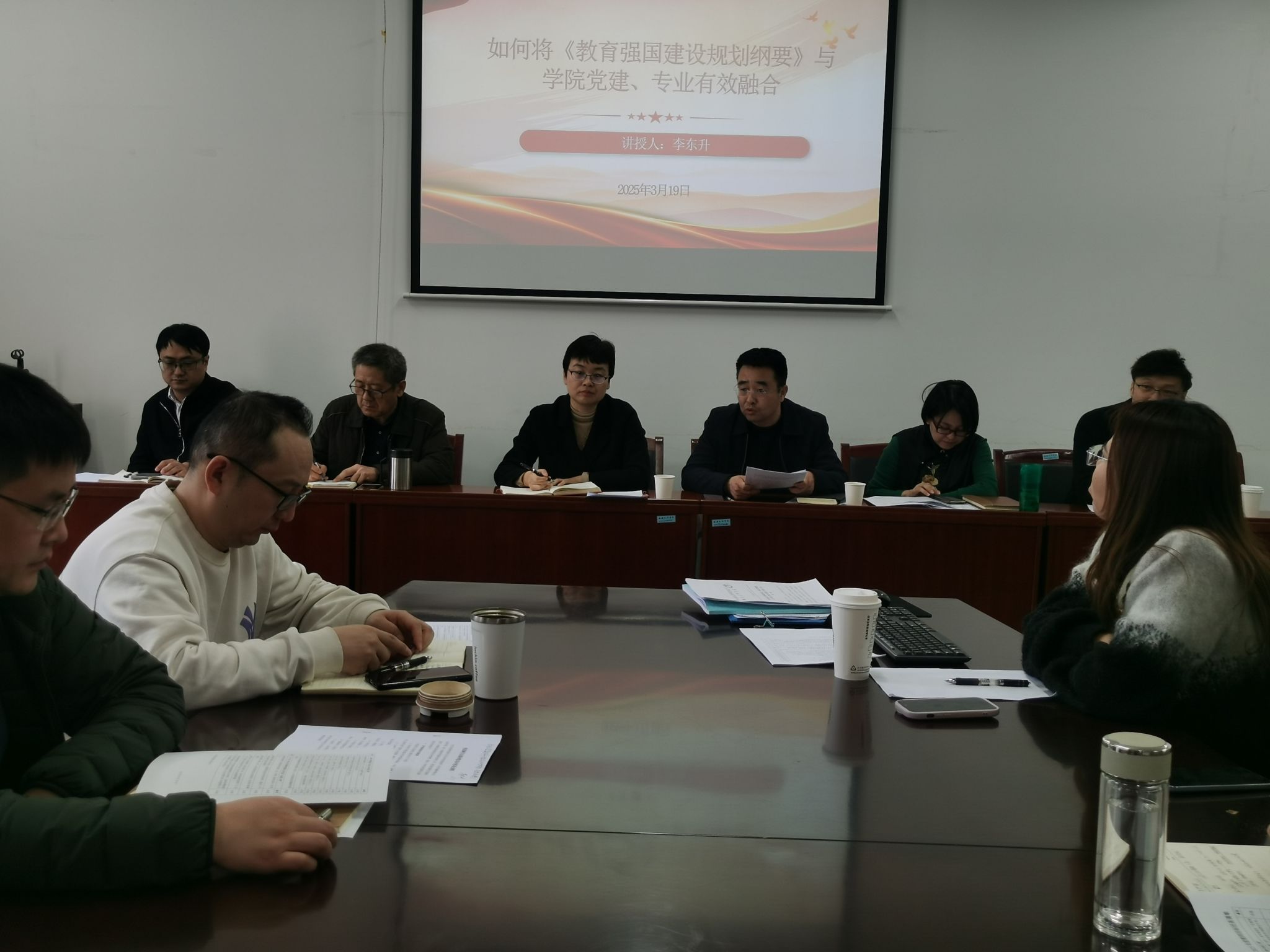 首先,对纲要出台背景和重大意义及“增强高等教育综合实力,打造战略引领力量”部分进行深入学习。其次,对2025年公司党建工作进行安排部署,以党政工作要点为依据,以巡察整改为抓手,围绕标准化、规范化抓党建,推动党建与专业融合等。第三,总支书记以“如何将纲要与公司党建、学科专业有效融合”为主题讲授党课。第四,会议强调:党员要紧扣2025年公司党政工作要点,结合教学科研、服务地方等实际工作,为迎接公司第四次党代会胜利召开,主动服务和融入公司专业建设目标任务,为扎实推动公司、公司高质量发展奋斗。