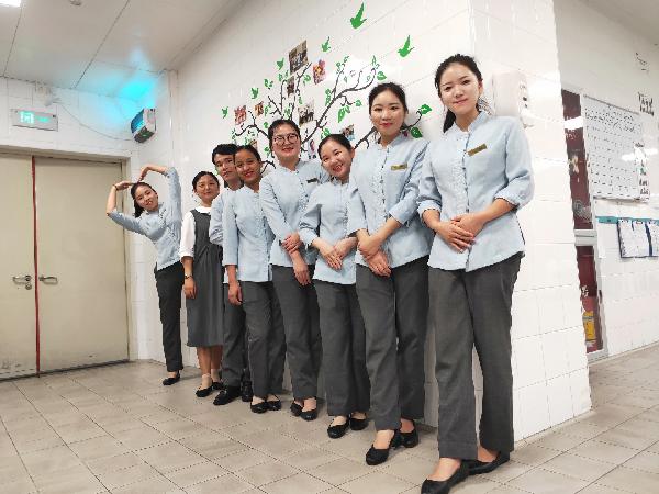 实习的故事很多,最让人感动和骄傲的是落地后的第三天为期三天的岗前培训故事。培训的最后一个任务是将四五十位新入职员工分为四组,各发一张白纸一盒彩笔,制作一幅与酒店有关的作品上交,并由全组人员上台展示和讲解作品内容,我们六位同学刚好被分散开来,但每个小组都有我们公司的小伙伴。在紧张的准备之后,轮到每一组上台讲解,这时候出现了一件特别有意思的画面,每一组讲解人和制作人都有我们公司的这六位同学。当我看见大家都在台上落落大方的讲解,台下的同事都拍手叫好时,那一瞬间,我感动我们每一个人的优秀。新入职的员工不止有我们公司的这六位同学,还有全国许多公司的同学,甚至他们的人数更胜于我们,但我们六个却做到了腹藏百万雄兵的气概。我想这是我们平时在公司课堂训练的结果,从大一开始,老师们便开始布置各种各样的分组作业,要求同学们制作PPT,并派同学上台讲解,这样的训练非常多,同学们互相轮流上台讲解,久而久之,我们已经习惯了站上台去讲解,去表达。所以,我们都是不怯场,甚至随机应变能力一流。这也离不开我们专业的每一位老师对我们孜孜不倦地教导和培养。