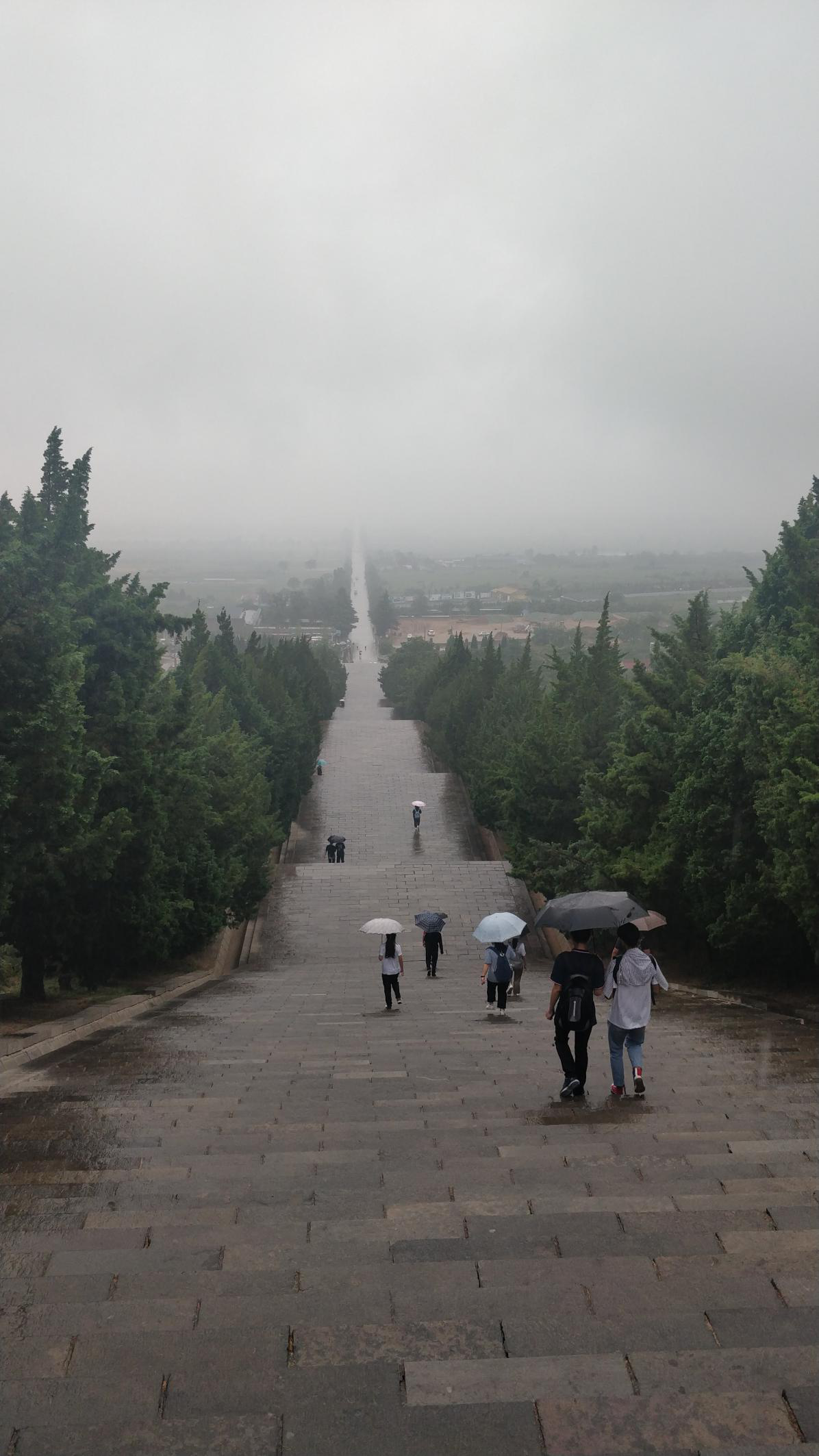 一条笔直宽阔的大路,数百级阶梯,这便是大唐的气魄,天空飘起小雨更是给乾陵蒙上一层阴郁的气息,让人对千年前的大唐遐想连篇。