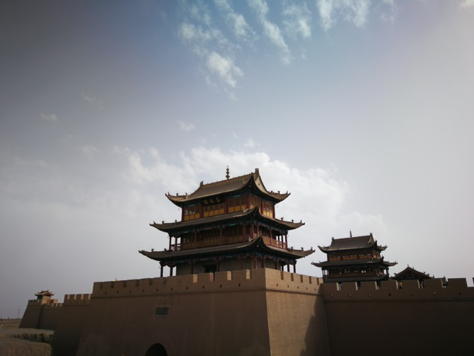 第四站我们来到的是嘉峪关,嘉峪关所在地是甘肃省西部的河西走廊最西一处隘口(河西走廊继续向西延伸)。甘肃西部已属于荒漠地区,河西走廊夹于巍峨的祁连山和北山(包括马鬃山、合黎山和龙首山)之间,东西长达1000千米左右。一条古道穿行于祁连山麓的戈壁和冲积平原上,古代“丝绸之路”即此。道路本艰险,到了嘉峪山隘口处,狭谷穿山,危坡逼道,嘉峪关踞此,形势非常险要,东通肃州(今酒泉),西达安西,是京都长安和西域联系的纽带。始建于明洪武五年(1372年),比山海关早建九年,是现存长城上的最大的关隘,也是中国规模最大的关隘。明初,宋国公、征虏大将军冯胜在班师凯旋途中,选址在河西走廊中部,东连酒泉、西接玉门、背靠黑山、南临祁连的咽喉要地——嘉峪塬西麓建关。明代东部的吐鲁番日渐强大,常引兵进犯河西走廊各城,嘉峪山隘口为必经之地。自建成嘉峪关后,这关便为西部国防重地,对保障河西地区的安全起着重要作用.明正德十一年(1516年)十一月,满速儿汗入寇肃州,游击将军芮宁阵亡,全军陷没,嘉峪关失守。嘉峪关由内城、外城、城壕三道防线成重叠并守之势,壁垒森严。与长城连为一体,形成五里一燧,十里一墩,三十里一堡,一百里一城的军事防御体系。嘉峪关初建时,是一座6米高的土城,占地2500平方米。现存的关城总面积33500余平方米,由外城、内城和瓮城组合而成。嘉峪关内城墙上建有箭楼、敌楼、角楼、阁楼、闸门等共十四座,关城内建有游击将军府、井亭、文昌阁,东门外建有关帝庙、牌楼、戏楼等。王天航老师在这里进行了现场教学,对历史时期的地形地貌变迁、古关隘的建筑形制、古建筑保护与修复中的理念变迁等问题进行了详细解说。让我们从古建方面了解了嘉峪关。这也是我们此次考察的最后一站。