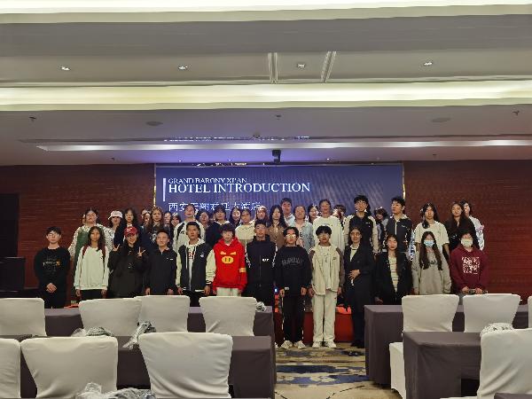 西安天骊君廷大酒店是“君廷”品牌在西安的首家进驻酒店,集商务与休闲于一体,融合了英伦贵族气质与中国文化特色。酒店人力资源部强经理向同学们介绍了酒店的发展历史、背景以及酒店企业文化,餐饮部经理及行政管家分享了她们的职业成长,并与同学们进行了交流。随后引领同学们参观了酒店的大堂、餐厅、客房、宴会厅、健身房等,为员工介绍了酒店主要职能部门及工作职责、发展规划。