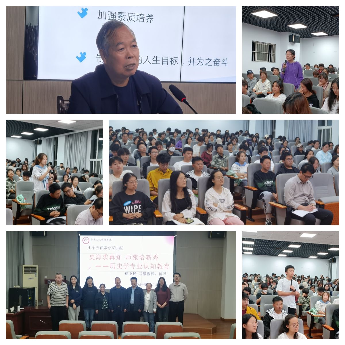 讲座中,徐卫民教授基于国内外师范教育发展简史介绍了师范教育的重要性、师范公司历史学设立的重要性,并结合自己特殊的求学经历、丰富的人生阅历、卓越的研究成就,详细地向师范生分享了自己的治学经验和人生智慧。徐教授强调,老员工需要端正专业态度以培养对专业的热爱,认真上好每一节课以打下扎实的学科基础,博览群书以增长见识并开阔学术视野,关注研究动态以培养研究意识和能力,同时提升教师教学技能。希望师范生能够树立明确的人生目标并为之奋斗,充分利用图书馆资源,不断提升自我发展的能力和水平。