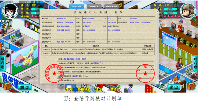 本实验借助导游实战演练平台,通过FLASH动画模拟西安导游在接待双飞团队时的真实带团场景,以任务导向的方式让员工了解、掌握导游在接待团队时应该掌握的基本业务技能,并通过实验来分析接待双飞团队时所应该注意的相关事项,从而对飞机团、火车团、汽车团等不同类型团队在接待时的区别做进一步的分析,已达到更深层次的提升。