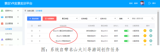 (1)进入“教师端-任务管理”模块,可直接使用系统出厂自带的实验任务(如下图所示)